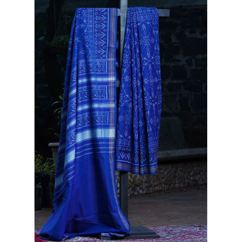 The mesmerizing blur of indigo that defines true ikat artistry - this ink blue beauty showcases the ancient resist-dyeing technique where threads are dyed before weaving, creating those signature soft-edged patterns we absolutely adore. The pure cotton drape offers effortless comfort while the deep blue hues shift like ocean waves with every movement. Each motif emerges from the loom with that characteristic ikat fluidity, making this handwoven masterpiece a testament to the patience and skill of artisans who have mastered this complex craft over centuries.