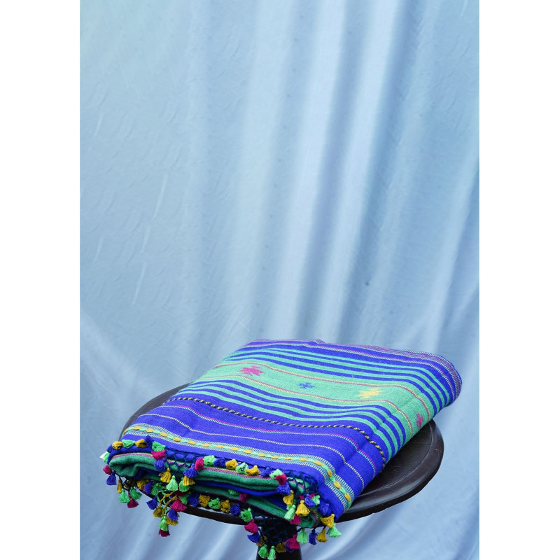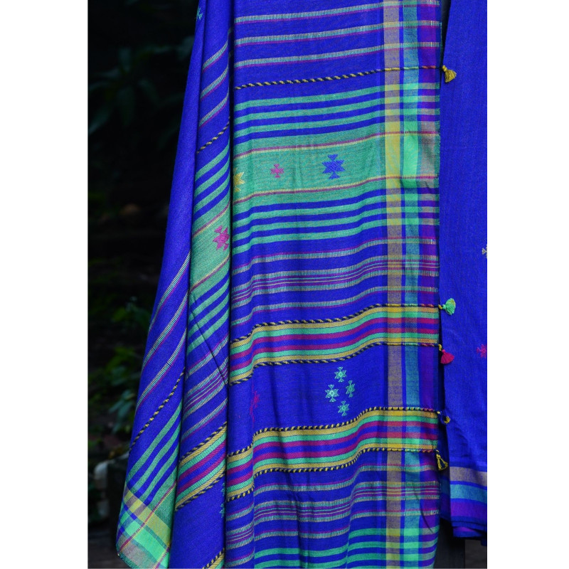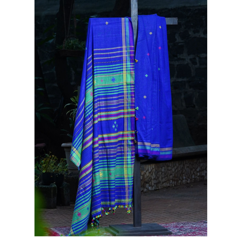The deep, jewel-toned richness of sapphire blue transforms the traditional Bhujodi checkered pattern into something absolutely magnificent in this handwoven masterpiece. Crafted by skilled artisans from Kutch, this cotton saree showcases the classic geometric weave in a stunning monochromatic palette that feels both timeless and contemporary. The robust texture characteristic of authentic Bhujodi work gives this piece remarkable durability while the intense blue hue creates an elegant sophistication that we find irresistible. Each square in the grid pattern emerges with perfect precision, making this saree a striking example of how traditional craft techniques can create truly modern elegance.