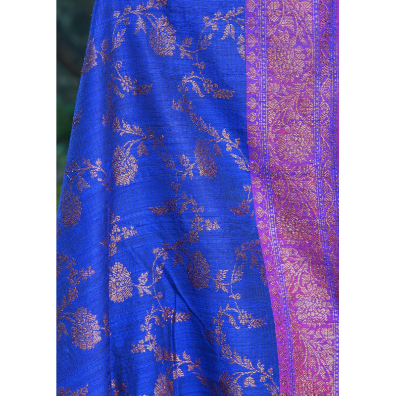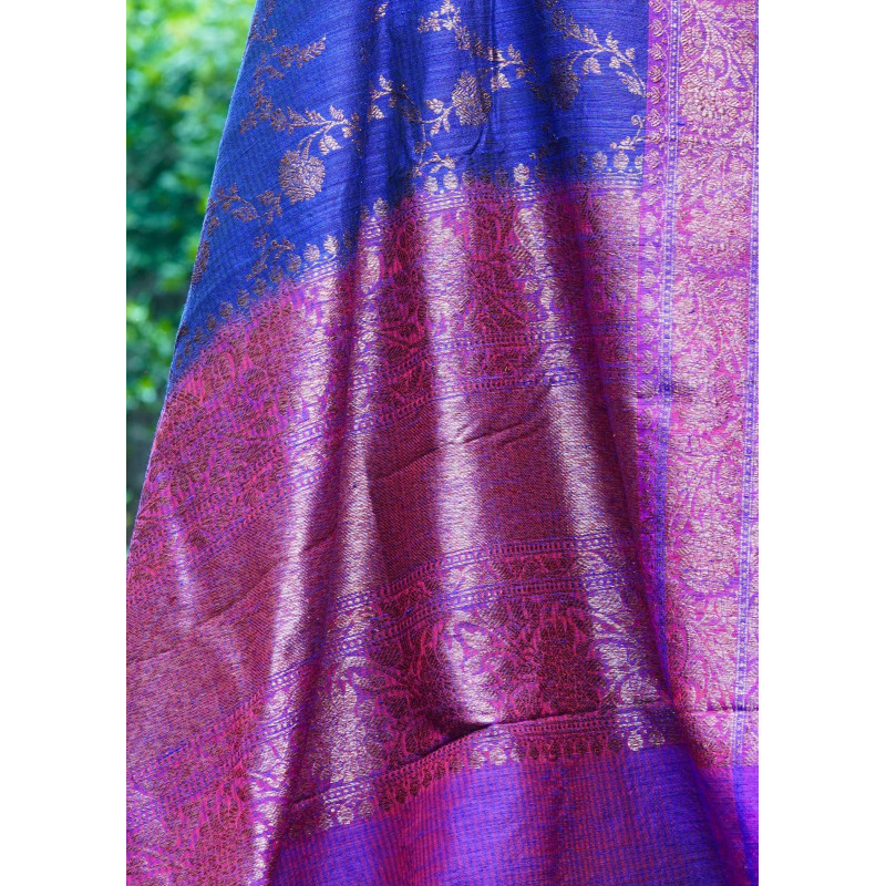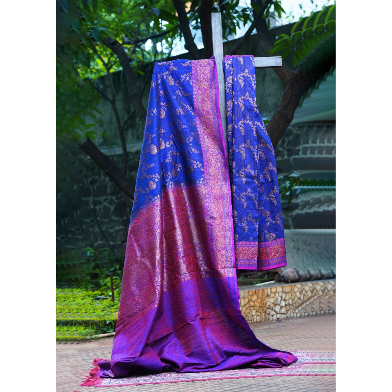 Experience the artistic brilliance of our Dual Tone Majesty saree, where contrasting colors create a symphony of visual delight. This stunning creation features a masterful blend of colors that transition seamlessly, showcasing the weaver's exceptional skill. Rich textures and traditional motifs dance across the fabric, creating patterns that tell stories of heritage and craftsmanship. The unique color combination makes this piece perfect for those who appreciate innovative design rooted in traditional excellence, ideal for special occasions and celebrations.